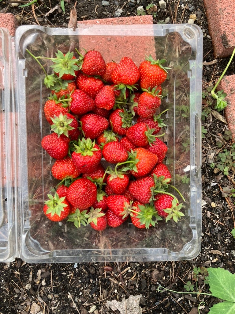 Also a treat: The strawberry patch in my garden is popping off this year.